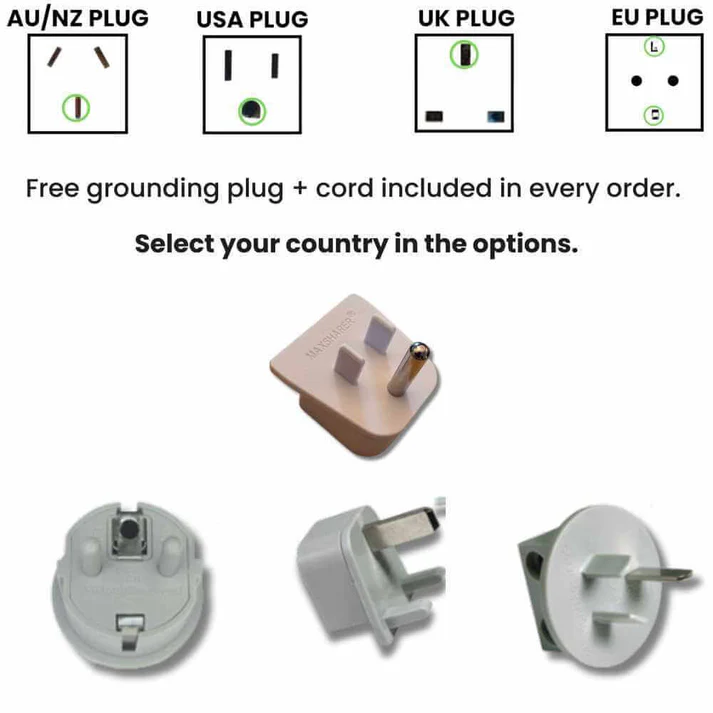 Plug the grounding wire into the grounding port of any power outlet